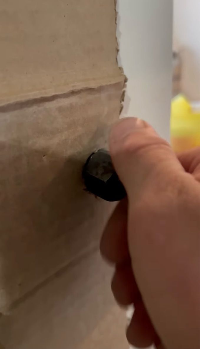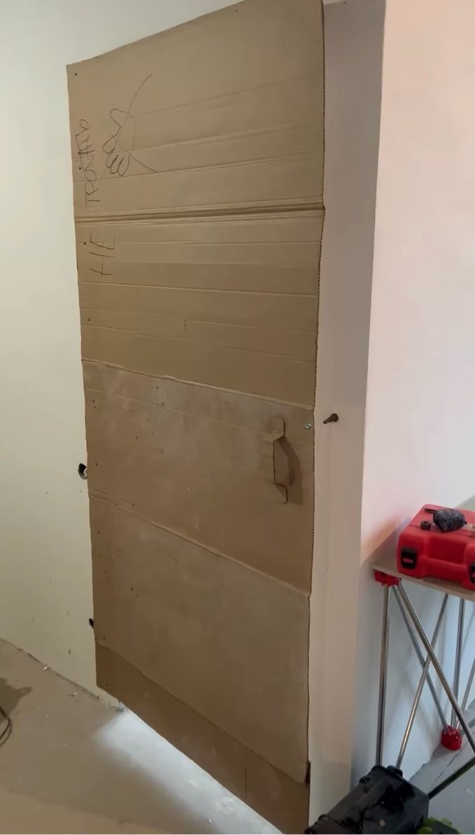 ドア枠に取り付けられた、ダンボール製の簡易ドア。 意外といけそうなその仕上がりは、こちらの動画からご覧いただけます。