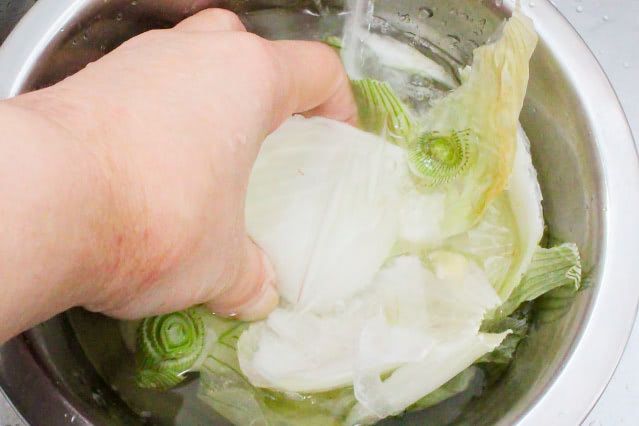 剥いた皮も一緒に煮込むので、水できれいに洗って水気を切ります。