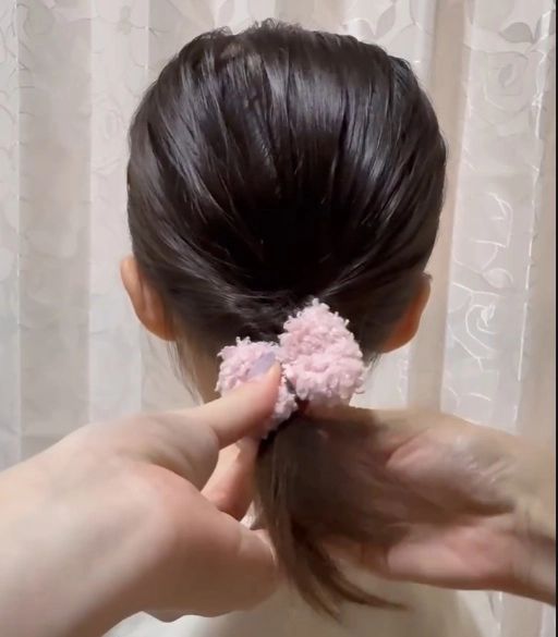 6. ゴムをぎゅっと整えて飾りゴムをつければ完成
