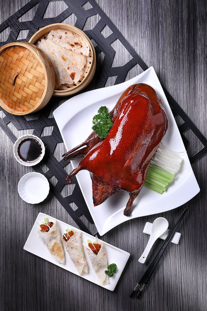 北京ダック約40⽇もの間、ゆっくりと熟成させた最⾼品質のダックを、熟練の技で香ばしく焼き上げ、極薄の皮を自家製クレープとともにいただけます。