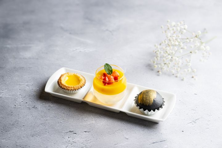 エッグタルト、(銀座限定)マンゴーとアロエヘベラ2色のゼリー、カスタード饅頭