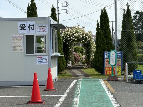 今年も9時前に到着したよ。 受付とその先に見えるバラの扉。