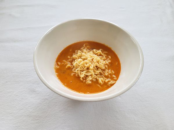 本格展開版を食べて驚いたのが、麺。モチモチ食感の日本オリジナル麺が採用され、乾麺と生麺の良いとこどりした食べ応えに、即席麺の印象が変わりました!