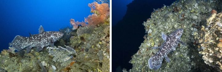 その魚体は、洞窟の中ではなく開けた岩礁の上に現れており、「日中は暗所に潜む」というこれまでの定説とは異なる行動を見せていました