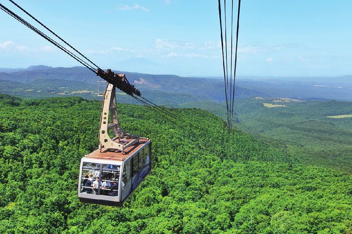 八甲田山麓の山麓駅から、標高差約650mの山頂公園駅までを約10分で結ぶ「八甲田ロープウェー(はっこうだろーぷうぇー)」。ゴンドラや山頂公園駅に隣接するウッドデッキなどからは、八甲田山系の大パノラマを見渡すことができます。