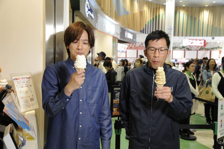 入り口に到着したDAIGOは「すごいところで料理できるんですね!」「キャモン!(Come On!)」と万博にワクワクの様子。まずは講師を務める辻調理師専門学校の日本料理の簾先生、西洋料理の紫藤先生、中国料理の河野先生と一緒に、パビリオン内で販売されている未来のグルメを発掘することに。