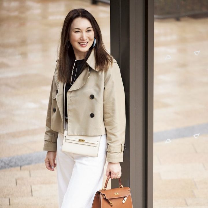 「季節の立ち上がりに気になるアイテムがあるとまず、コスパ服ブランドのショップをのぞきます。今季私が惹かれたのがH&Mのショートトレンチ。着る期間が短いので悩みましたが、プライスとデザイン、色味などバランスが完璧なので、これなら挑戦できそう!と購入を決めました。靴やバッグは必ずハイブランドを合わせます」