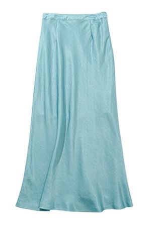 ツヤのあるブルーグリーンのサテンスカート