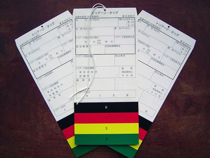 日本で使用されるトリアージ・タグ / Credit:Wikipedia Commons