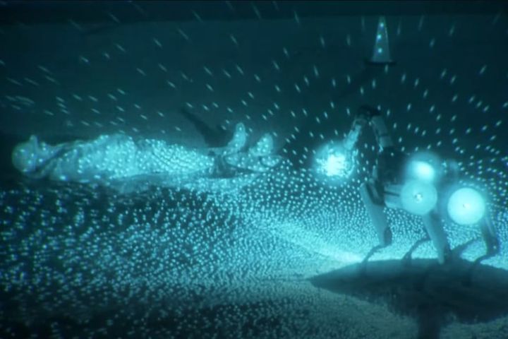 UGVは瓦礫の中を自律走行し、負傷者に近づいて音声による応答を確認したり、非接触センサーで皮膚の色や出血状況をスキャンしたりします。