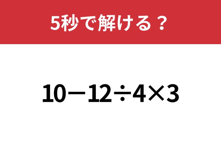 大人なら解けないと恥ずかしいかも!?「10−12÷4×3」5秒で解ける?