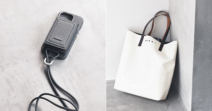 見た目以上の収納力が優秀。ストラップ一体型アイフォンケース¥28,600(オブジェクツ アイー)