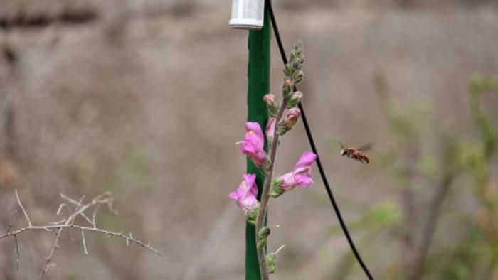 研究チームは、キンギョソウの送粉者としてよく知られる小型の蜂(Rhodanthidium sticticum)の羽音を録音し、それを花の近く再生しました。