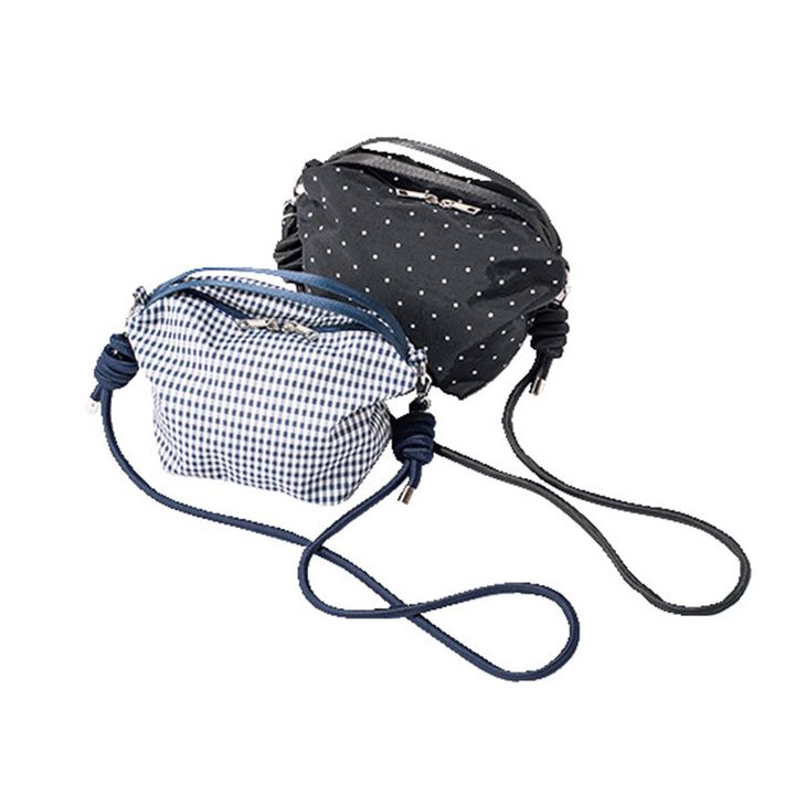 cache cache ナイロンドローコードショルダーバッグ ブラックドット、ネイビーギンガムチェック Price_¥5,940