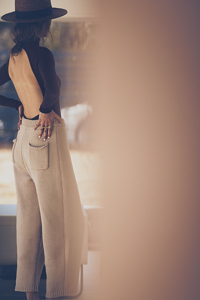 やさしく柔らかいニットパンツでスキンコンシャスなトップスを整えて