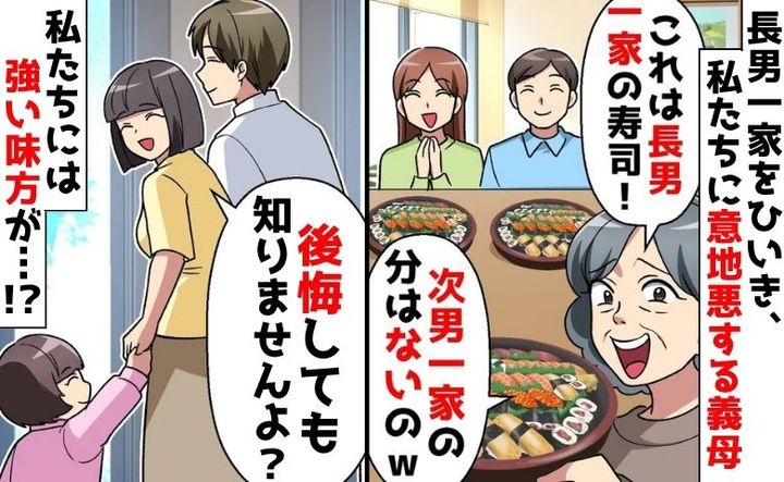 3. 「次男一家に寿司はない!」長男一家をひいき、意地悪に笑う義母。私「後悔しても知りませんよ?」実は?