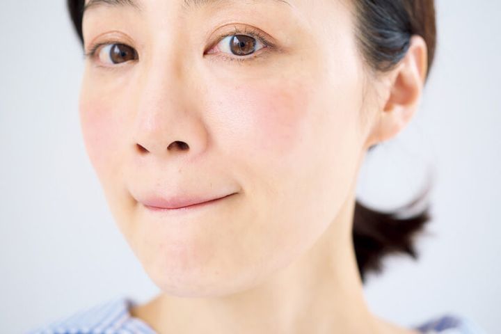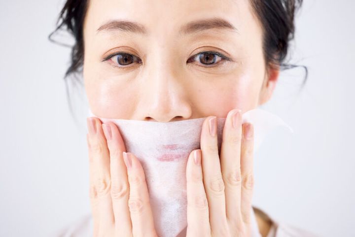 ティッシュで軽く押さえ、美容液のツヤをオフ。