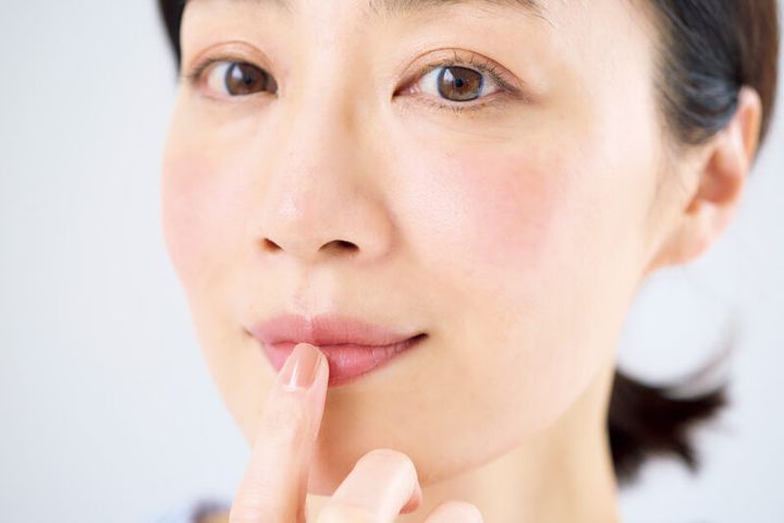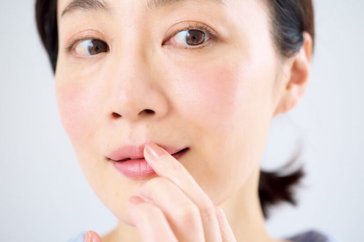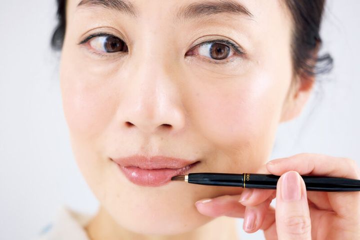 指先で上唇の山を丁寧になぞる。ただつけるだけだと、大人にはラフすぎ。