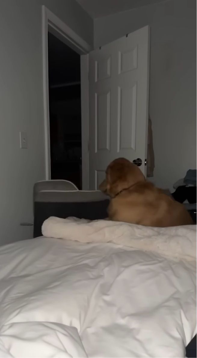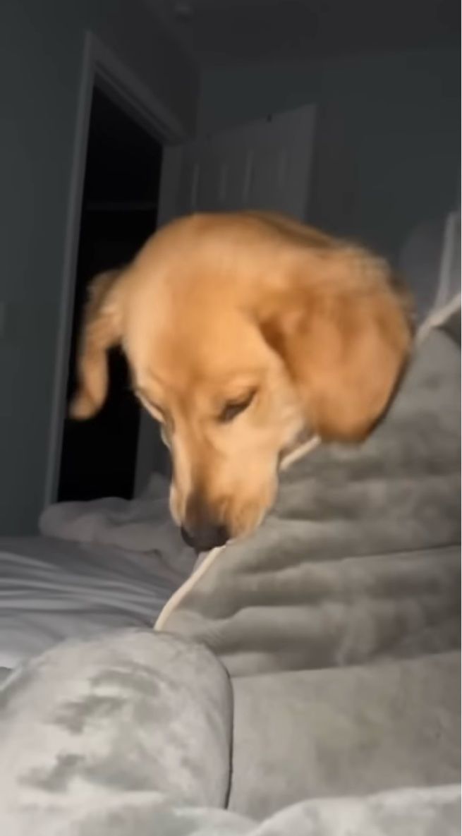 飼い主さんと一緒に寝たいと考えたゴールデンレトリバー。 すると、この子は突拍子もない行動に出たのです!!