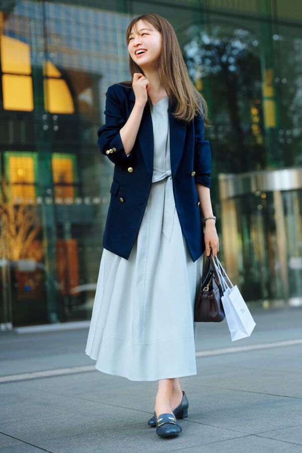 3. クライアント訪問はワンピに紺ジャケを羽織って好印象をキープ!<5/23のコーデ>