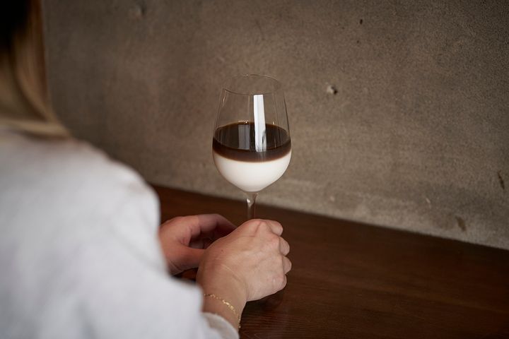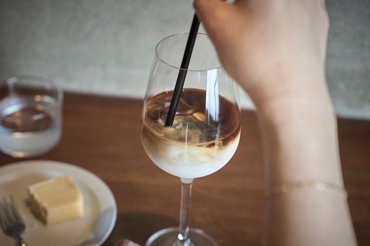 コーヒーにミルクを少しずつ混ぜ合わせながら、「オ・レ・グラッセ」の味の変化を楽しみます。ワイングラスでコーヒーを飲むのは、なんだかぜいたくな気分にさせてくれるもの。家でもぜひ試してみたい!