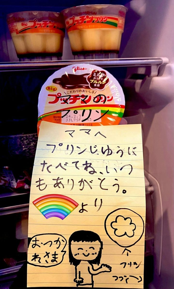 この投稿に「世界一おいしいプリンだ」「『じゆうに』っていいな!冷蔵庫に入ってても、子どもが好きな食べ物って遠慮することよくあるから…」というリプライがありました。間違いなくこれは世界一おいしいプリンでしょうね。