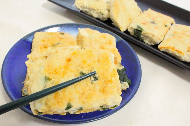 YouTubeの料理系チャンネル『調理師ゆめ子のこだわりレシピ』で作っていた、「しっとり豆腐つくね」が完成しました。焼く前に肉だねに切れ目を入れたので、線に沿ってフライ返しを入れると、簡単に四角く切り分けられましたよ。