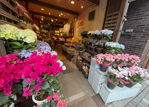 通りに面した店頭には、色とりどりの季節の花々が美しく並び、歩いているだけで自然と足を止めたくなるような華やかさがあります。