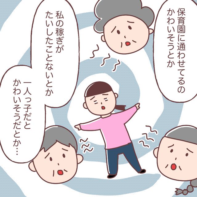 「『保育園に通わせてるのかわいそう』とか、私の稼ぎがたいしたことないとか、一人っ子だとかわいそうだとか・・」とこれまでおばあちゃんたちに言われたことをぶちまけました。