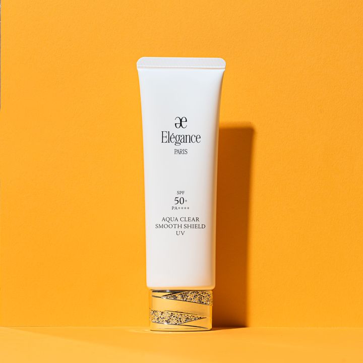 無色のみずみずしいテクスチャーが肌に伸び広がって、つるんとなめらかな膜を形成。顔からデコルテまで紫外線カットしながら、透明感のある肌に。驚きのスムースさで使い心地は抜群!スーパーウォータープルーフだから汗をかいても安心です。 SPF50+ PA++++ UV耐水性★★ アクアクリア スムースシールド UV 50g 5,500円/エレガンス