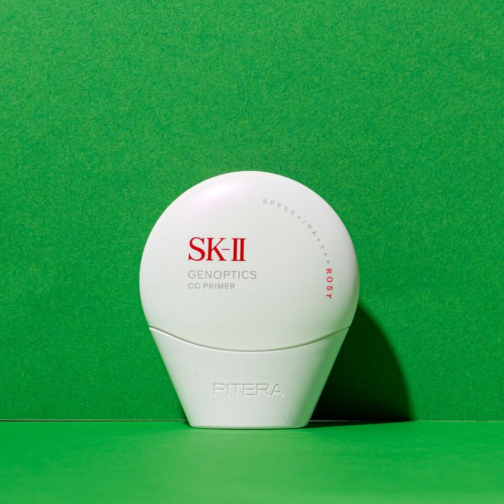 日焼け止めを超えた1本5役の多機能CCクリーム。保湿・明るさ・ハリ・UVカット・下地&ナチュラルカバーという5つの効果を凝縮。ロージーピンクは、素肌を活かしつつ血色感とツヤを演出しトーンアップします。どんな肌色の人にも◎。塗り伸ばした時に肌の閉塞感やきしみ感がなく、ふわふわな肌を叶える。SPF50+・PA++++ SKーII ジェノプティクス CC プライマー ロージーピンク 30g 9,900円(編集部調べ)/P&Gプレステージ(SK-II)