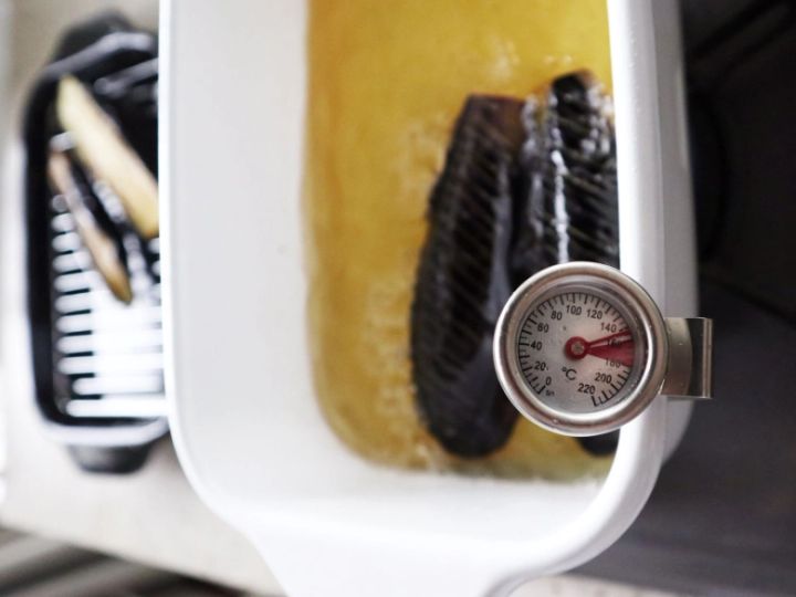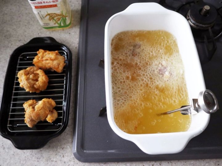 ズバリ!カラッとジューシーな唐揚げも、とろ〜りな揚げなすも、揚げ物がうまくいくポイントは、揚げ油の温度コントロールができるかどうか?です。多くの揚げ物の揚げ油の適温は170~180℃で、適温そうになったら⾐をちょっと⼊れて…シュワっと浮いてきたら適温です〜など、実は感覚任せの“適(当)温(度)”でドキドキしながら投⼊!なんて、冒険調理をしている⽅が多いのではないでしょうか?