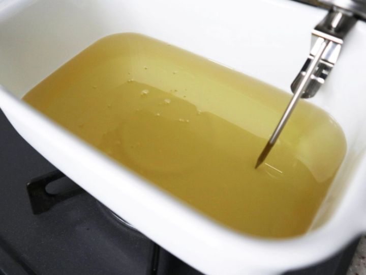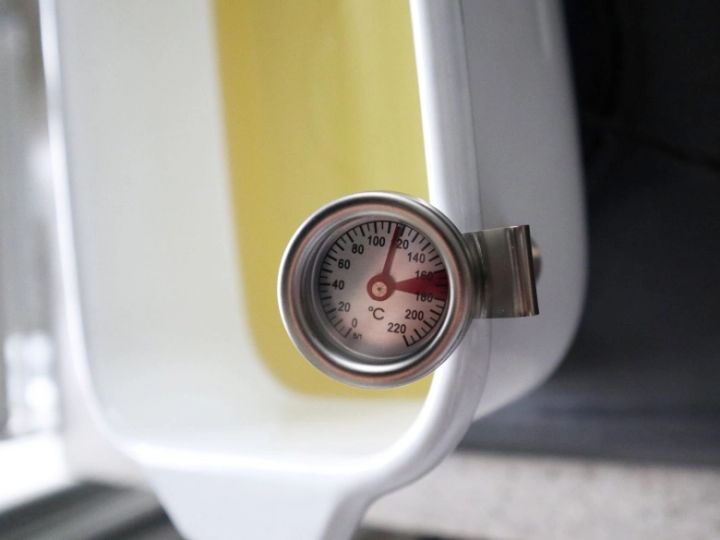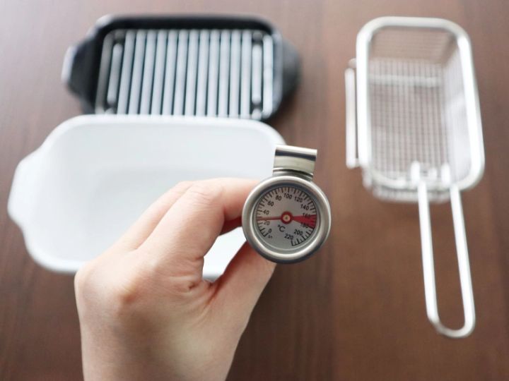 揚げ油は加熱して⾊が変わったり、とろみがついたりお湯のように沸騰するようなことはありません。無⼝で無表情なもの相⼿に、メインディッシュという料理の主役で戦う時こそ、キッチン⽤品の相棒『揚げ油の適温を⾒える化してくれる温度計』が、百万⾺⼒のサポートをしてくれます。