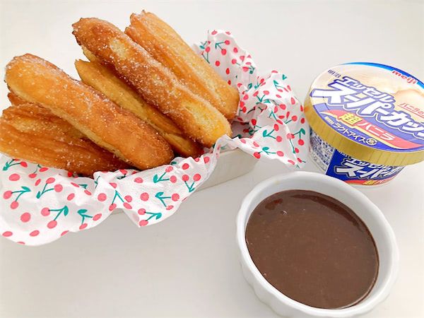 「明治エッセルスーパーカップ」が提案する「超バニラチュロス」は、混ぜて揚げるだけで本格的なチュロスが楽しめるおすすめレシピ。