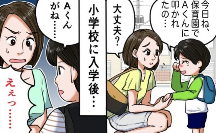 息子から「今日ね、〇〇くんがね……」と毎日のように乱暴な友だちがやらかしたことの報告が。「何かあったらすぐに逃げて先生に相談するんだよ。やり返したりしないようにね」と口を酸っぱくして伝えていました。そして恐れていたとおり、あるときから息子が被害に合うように。