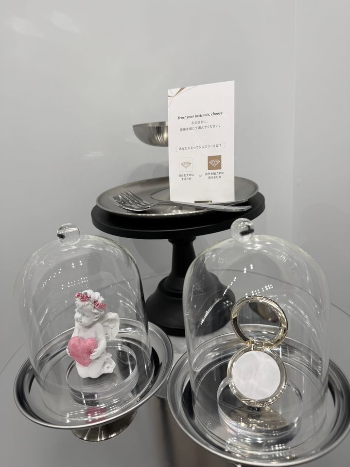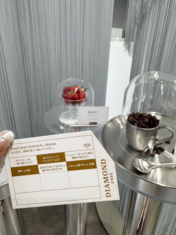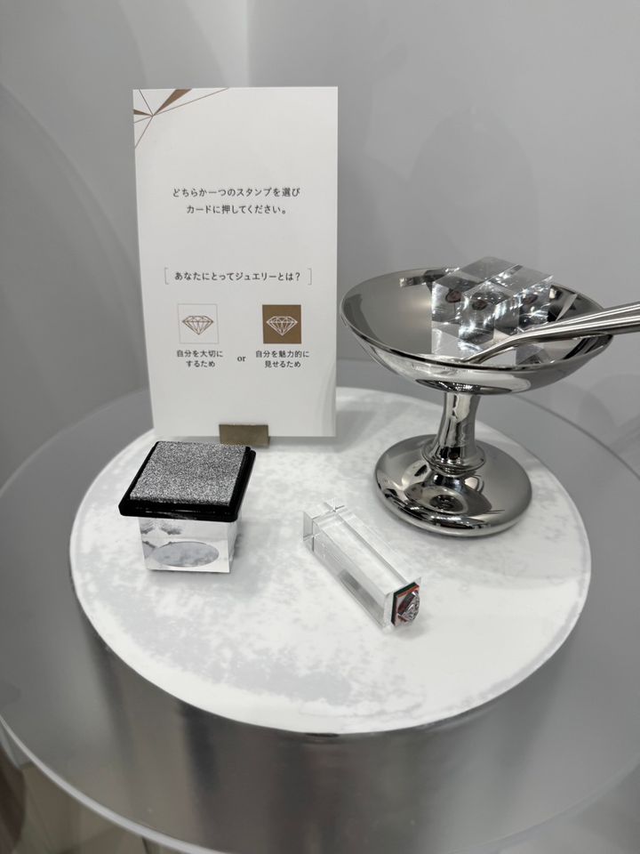 イベントの目玉ひとつ「ラザール ダイヤモンド診断」。カードに書かれた3つの質問から、自分にぴったりのジュエリーシリーズを導く体験型コンテンツです。エントランスで渡された1通のカードを手に、いざ自分を再発見する小旅行へ!