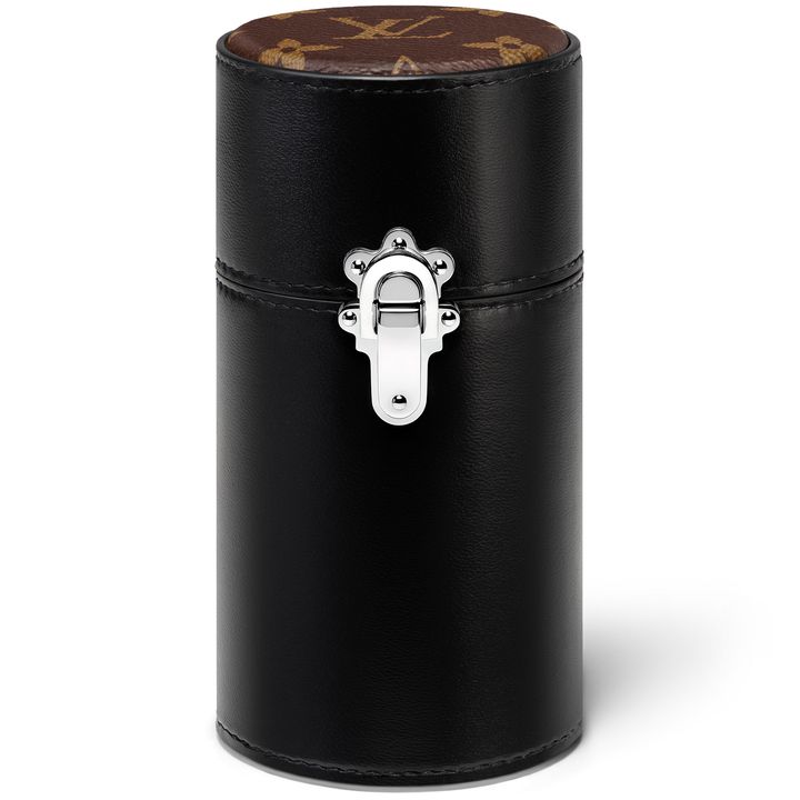 ブラックのラムレザーとエボニー カラーのモノグラム・キャンバスのトラベルケース(別売り)は、バイオレットのマイクロファイバーライニングとシルバーカラーのメタルバックルでフレグランスのボトルをしっかり収納。バッグの中に忍ばせて、あらゆるシーンで香りを楽しめます。