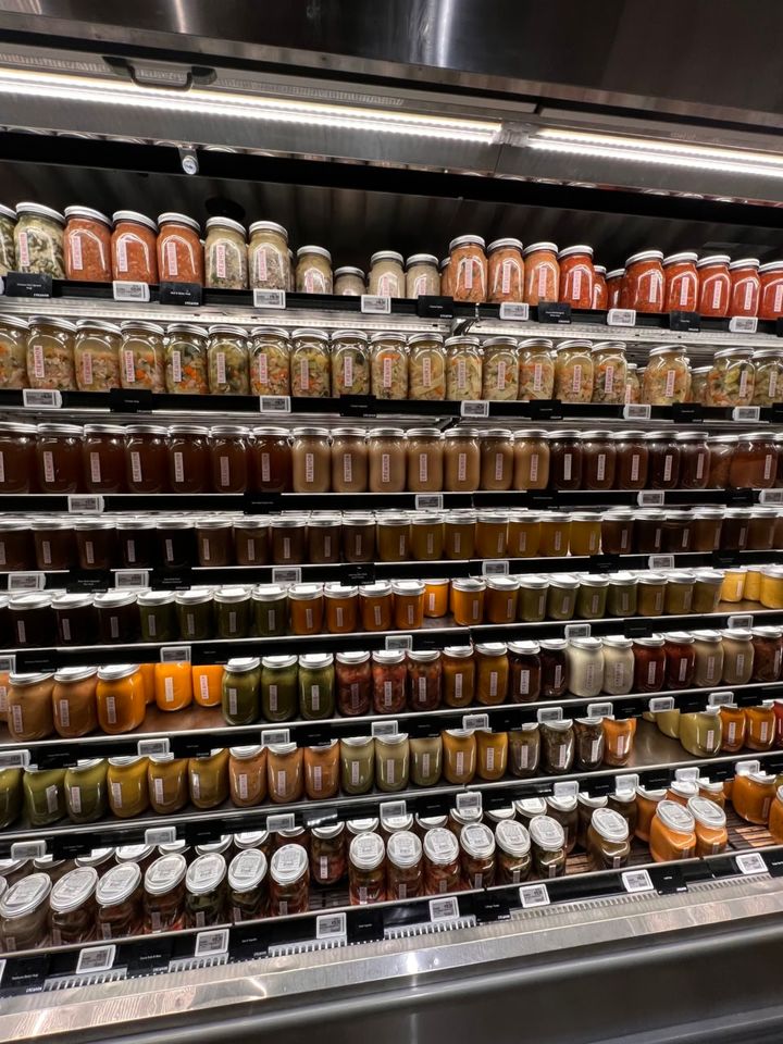 エレウォンが普通のオーガニック系スーパーと何が違うってまず、ここで取り扱う食品は体にも地球にも優しい商品「だけ」なので、手に取るすべてのものが「安心・安全」だと信頼できるところ(Erewhon はB Corp認証<※社会的および環境的パフォーマンスで最高の基準を満たした企業にのみ与えられるもの>を取得しているそうです)。パスタソースひとつとっても、瓶のラベルには笑ってしまうほどすべてにオーガニックの文字が印字されています。