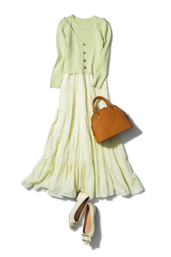 カーディガン付きワンピース¥25,300/アプワイザー•リッシェ バッグ¥2,990/神戸レタス 靴¥7,700/オリエンタルトラフィック(ダブルエー)