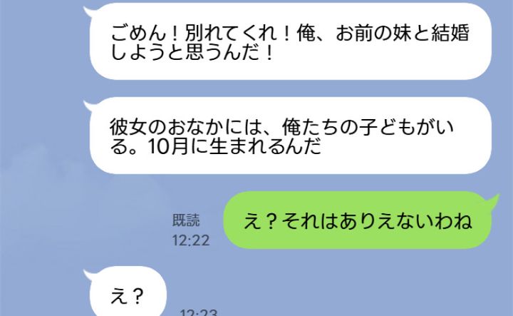 まさかの発言に、私はぽかん。「……は? 私の、妹……?」と言うと、「あぁ、俺はお前の妹と結婚する! だからお前とは別れるし、同棲も解消だ!」と婚約者。
