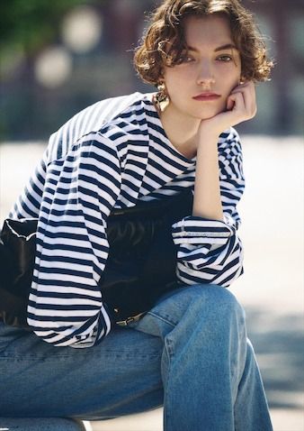 定番のボーダーも、あえてゆるめのシルエットをチョイス。ベーシックな組み合わせこそ、サイズ感や着こなしのさじ加減で自分らしさを表現して」(樋口さん)