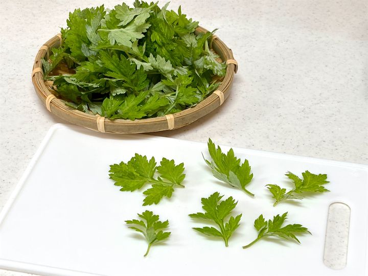 生葉のよもぎは、すぐにしおれてしまうので、冷蔵だと3日程度しか保存できないそうです。そこで、食サイト『ほほえみごはん』では、新鮮な風味を約1か月キープできる冷凍保存をおすすめしています。洗ったあとに茹でてあく抜きし、ペースト状にして冷凍すると、料理にもすぐに使えて便利なんですって。このペーストでよもぎ団子を作ります。