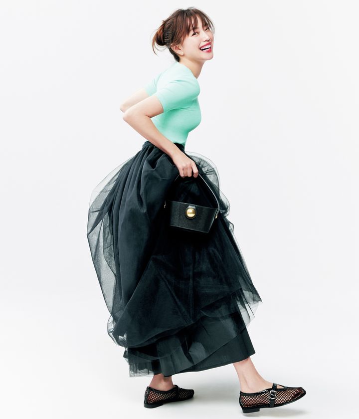 とっておきの日はキレイ色をベーシックカラーでぎゅっと締めて知的さとモード感をプラス。爽やかミントのシンプルTは黒のチュールスカートで華やぎを盛ってさらにメリハリを。互いを引き立てるカラーリングを存分に味わって。