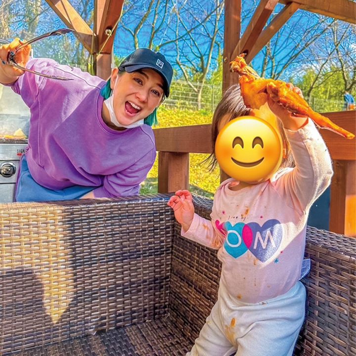 暖かくなってきて、釣りとバーベキューができるところに行きました。釣った魚を教えてもらいながら自分で捌いて、焼いていただきました!三女は鶏肉を頬張って、私は肉焼き係!