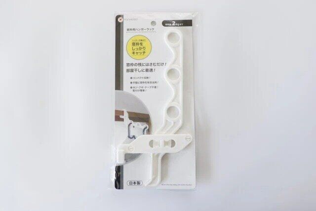 ダイソーの『ハンガーラック 窓枠用』は、窓枠に引っ掛けるだけで簡単に取り付けられる便利な収納アイテム。ネジや工具不要で、木枠の厚みに合わせてサイズ調整も可能です。