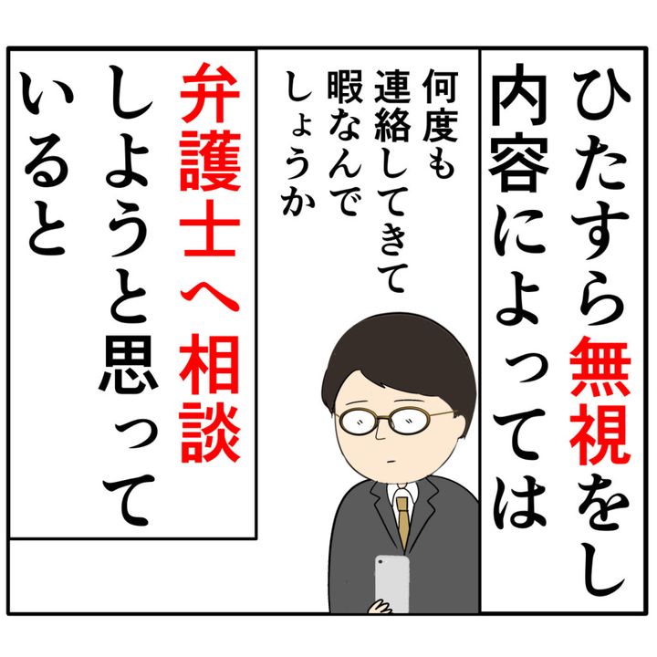 めが根さんはひたすら無視をし、内容によっては弁護士へ相談しようと考えていたところ、