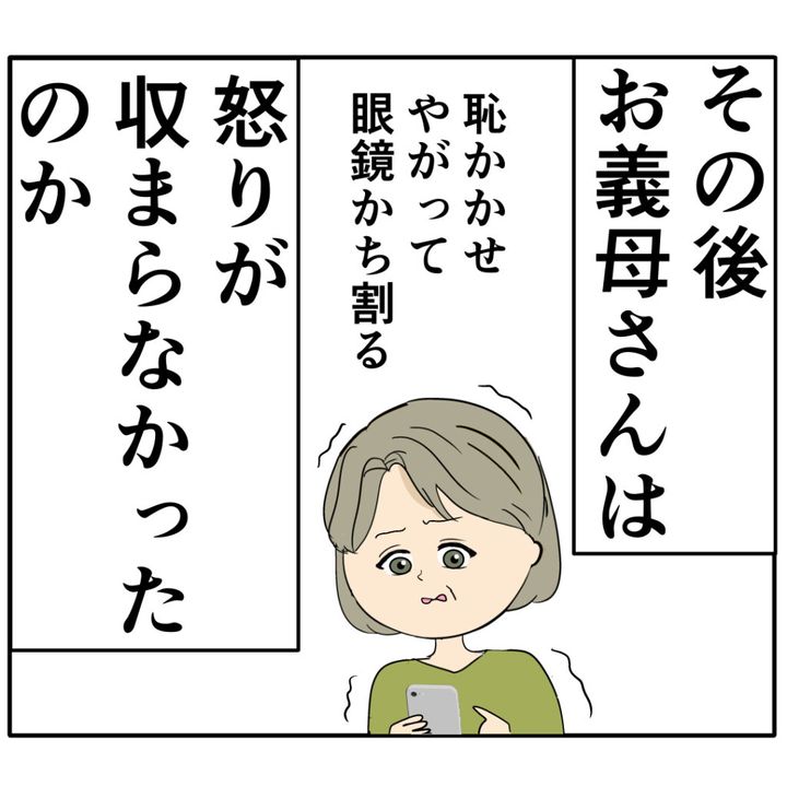 乱暴な言葉をめが根さんにぶつけている姿をご近所さんに見られてしまい「怖いわねー」とヒソヒソ言われたジュリ実さんのお母さん。恥をかかされたとめが根さんを逆恨みする義母は怒りが収まらなかったようです。