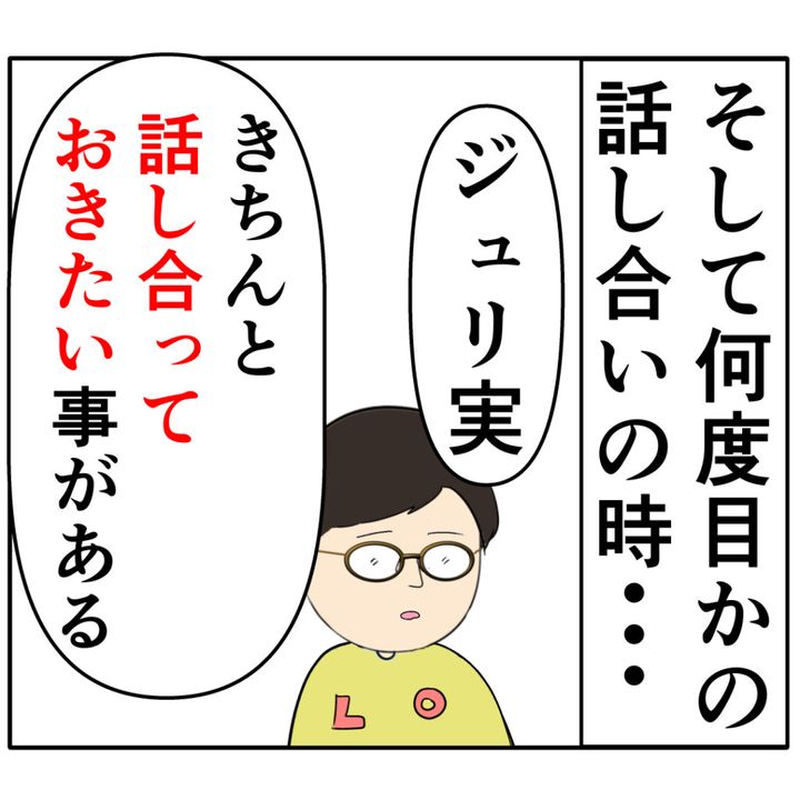 そして、何度目かの話し合いの時、めが根さんは「ジュリ実、きちんと話し合っておきたい事がある」と話を切り出しました。