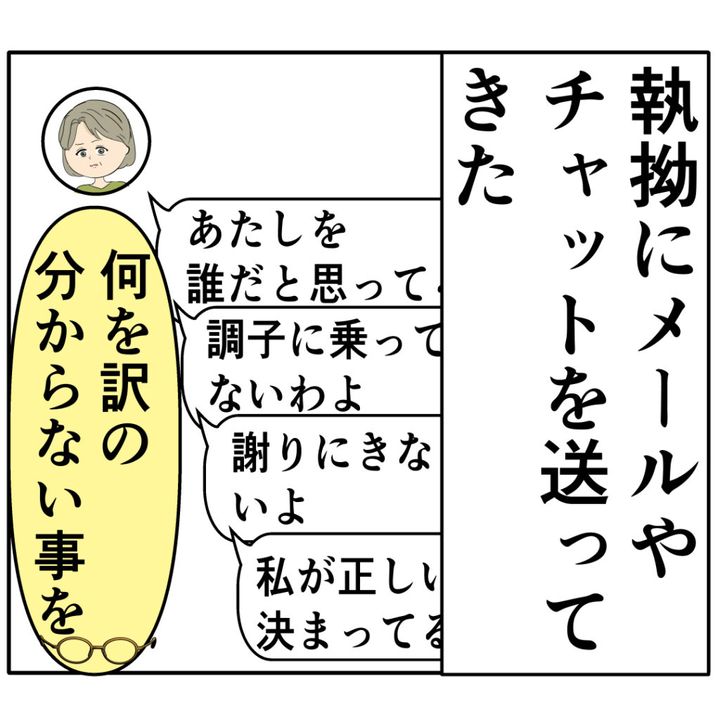 それ以降、「あたしを誰だと思ってるの」「調子にのってんじゃないわよ」などと執拗にメールやチャットをめが根さんに送ってくるようになった義母。