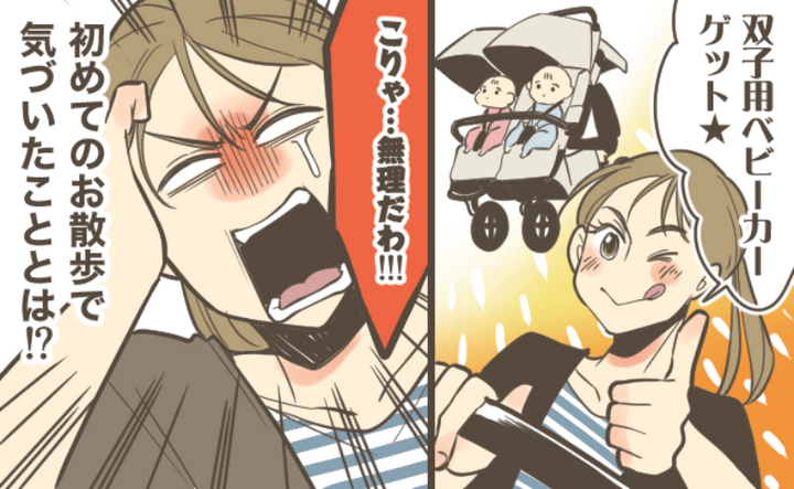 「こりゃ…」双子用ベビーカーを購入!いざお出かけへ!使ってみると問題多発…後悔したこととは!?